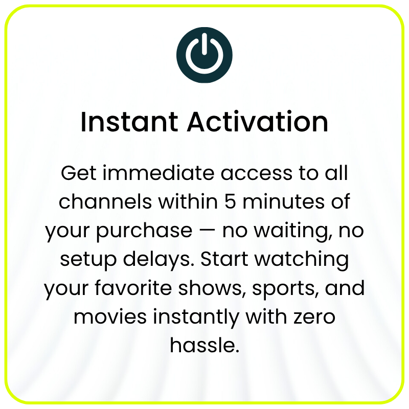 No delays, no hassle. Complete your subscription and start streaming in under 5 minutes.